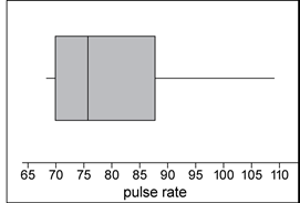 The box-and-whisker plot below has been constructed from the five-number summary of the resting pulse rates of 17 students.