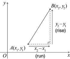 \(AB=\frac{\text{rise}}{\text{run}}=\frac{y_2-y_1}{x_2-x_1}\), provided that \(x_2-x_1\neq0\)
