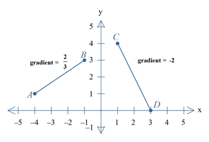 Gradients can be positive or negative, indicating whether the line is increasing or decreasing from left to right. The graph below shows two examples: