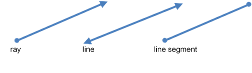 A line is different from a ray (which extends from a point toward infinity) and a line segment (which extends between two points). Lines are depicted with arrow heads on both ends to distinguish them from rays and line segments.
