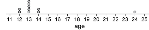 An outlier is a data value that appears to stand out from the other members of the data set by being unusually high or low. The most effective way of identifying outliers in a data set is to graph the data; for example, in the following list of ages of a group of 10 people, {12, 12, 13, 13, 13, 13, 13, 14, 14, 14, 24}, the number 24 would be considered to be a possible outlier.