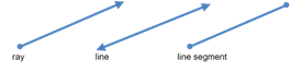 A ray is the part of a line that starts at a point and continues in a particular direction to infinity. Rays are usually depicted with an arrow head, which indicates the direction in which the line continues to infinity.