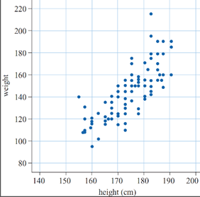 Suppose we record the heights and weights of a group of 100 people. The scatterplot of those data would be 100 points. Each point represents one person's height and weight.