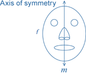 A plane figure f has line symmetry in a line m, if the image of f under the reflection in m is f itself. The line m is called the axis of symmetry.
