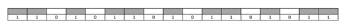 Binary data are typically represented as a series of single digits referred to as binary digits (or bits) due to each taking on the value of either 0 or 1. The image below shows how a dashed line might be represented in binary.