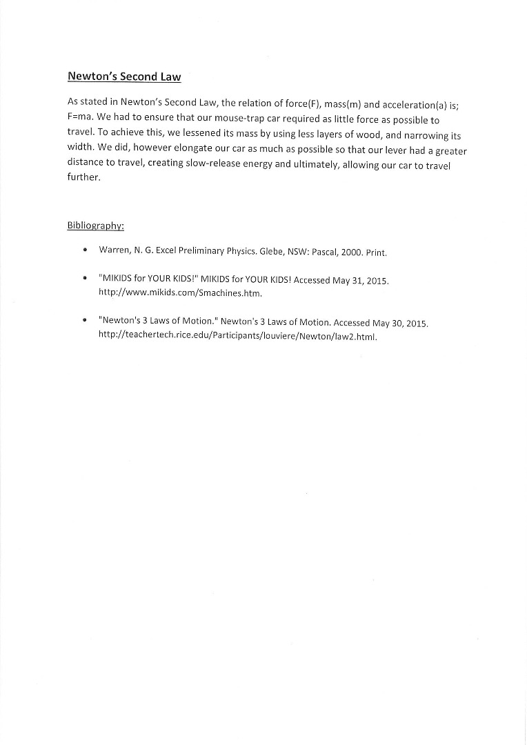 Describes Newton's Second Law of Motion and how it applies to the given problem 2 Science