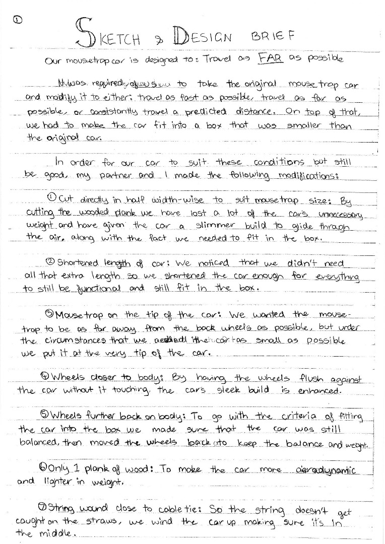 Describes the function of the key components of the car, how they have been changed and gives justification for the alterations based on reasoning 4 Mathematics